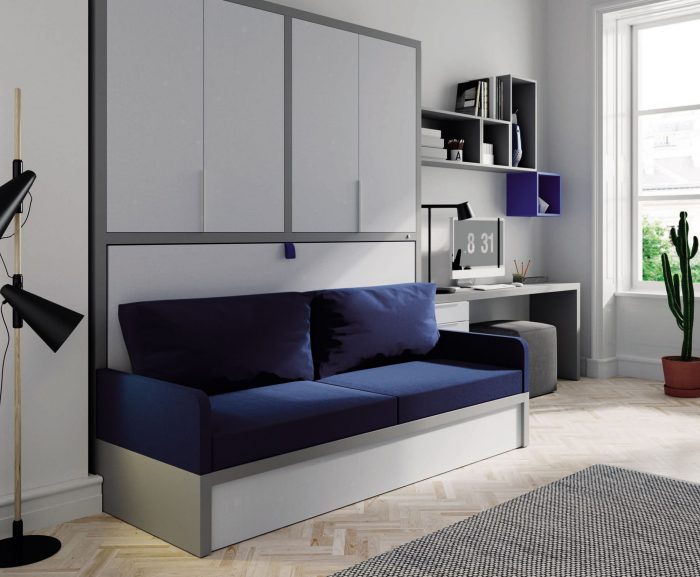 Mueble compuesto por un sofá y por una cama abatible en su interior