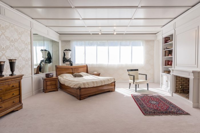 Cama: 221 cm de largo x 160 cm de ancho y 102 cm de alto (para colchón de 150×190 cm)