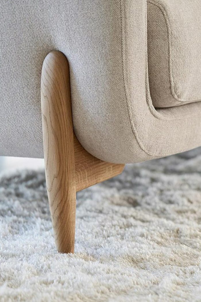 Varias disposiciones de patas de madera a elegir, con acabados en roble o nogal.