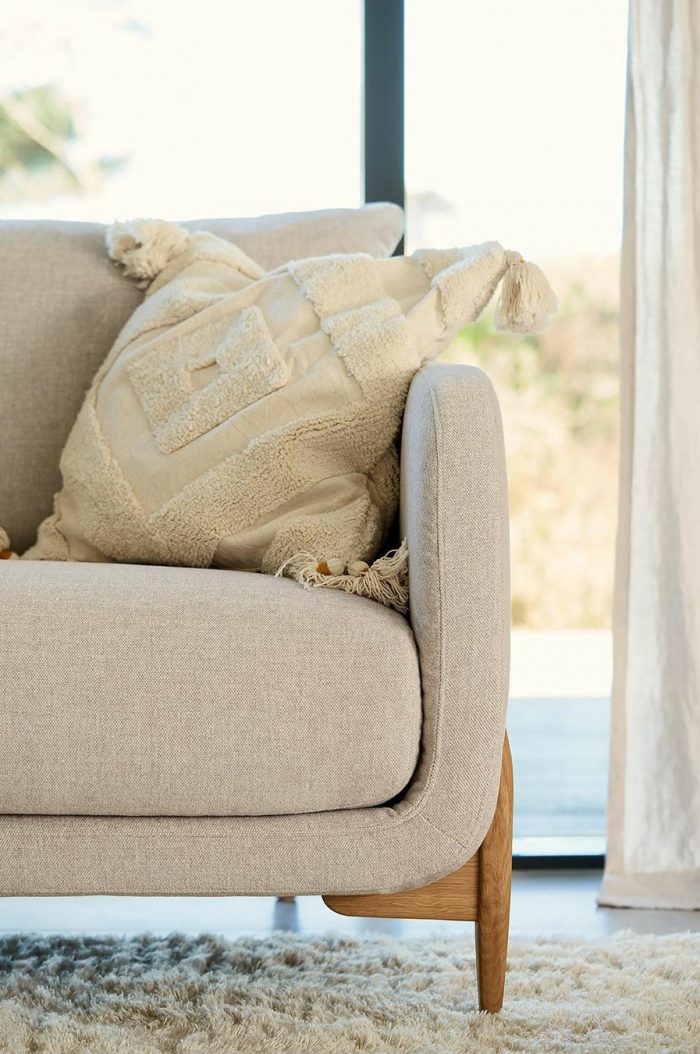 Sofá curvo tanto en su perfil como en su trasera donde se cuida hasta el más mínimo detalle.